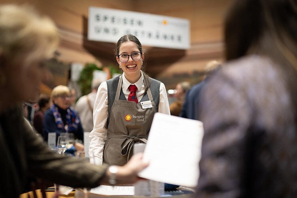 Bildtext Ferienmesse Wien 2026_5: Engagierte Schülerinnen und Schüler des Pannoneum Neusiedl am See sorgen für professionellen Service am Burgenland-Stand.