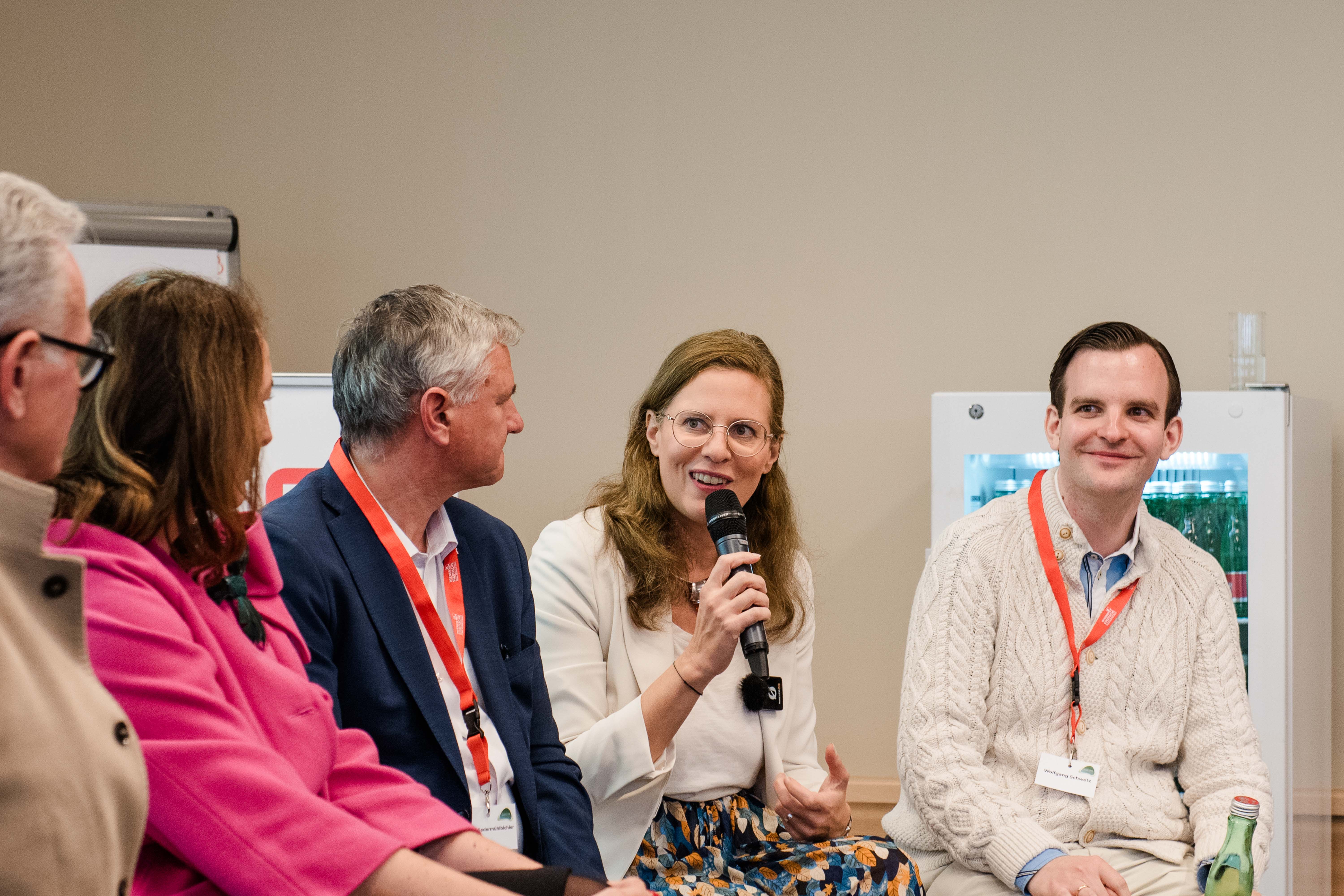 Bildtext Illmitzer Gespräche 1: Landeshauptmann-Stellvertreterin Anja Haider-Wallner bei der Eröffnung der Nachhaltigkeitskonferenz „Illmitzer Gespräche“.