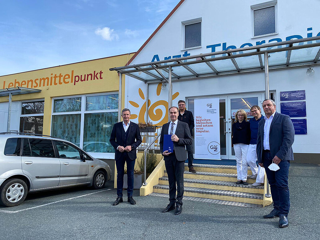 Bildtext Gesundheitszentrum Lebensmittelpunkt 1 bis 3: Landesrat Leonhard Schneemann besuchte gemeinsam mit LAbg. Ewald Schnecker, Bürgermeister Franz Josef Kern, Gemeinde St. Martin an der Raab und Bürgermeister Helmut Samt, Gemeinde Minihof-Liebau, das Gesundheitszentrum "Lebensmittelpunkt" in Minihof-Liebau.