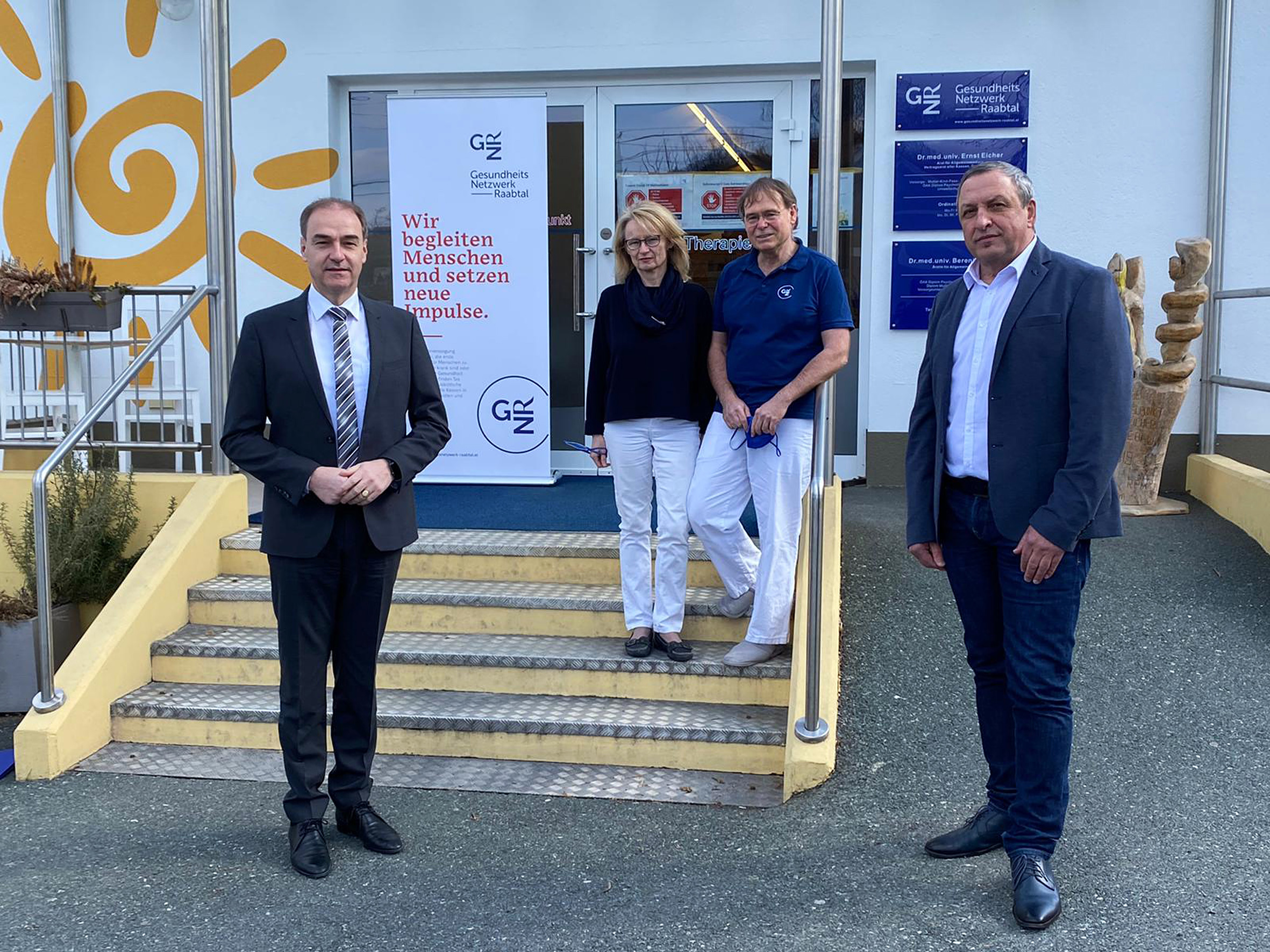 Das Gesundheitsnetzwerk Raabtal bietet eine umfangreiche Primär- und Sekundärversorgung für die Bevölkerung im Bezirk Jennersdorf. Neben medizinischen Leistungen bietet das Gesundheitszentrum "Lebensmittelpunkt" in Minihof-Liebau, als Teil des Gesundheitsnetzwerkes Raabtal, aber auch regionale und gesunde Lebensmittel als Nahversorger an. Landesrat Leo Schneemann machte sich heute, Freitag, selbst ein Bild der wohnortnahen Versorgung im Südburgenland: "Dieses Lebensmittel- und Gesundheitszentrum ist ein beeindruckendes Projekt, wo alles aus einer Hand kommt und alles unter einem Dach vorhanden ist. Neben medizinischen Leistungen der Primär- und Sekundärversorgung findet man hier auch Angebote, wie Gesundheitsvorsorge und Physiotherapie. Ein tolles Projekt und eine Bereicherung für die Bevölkerung", so Schneemann, der allen Beteiligten für ihr großes Engagement dankte.