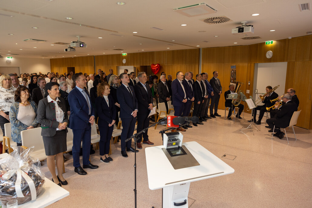 - Weiters wurde auch Primarius Dr. Norbert Tatrai, Leiter des Fachschwerpunktes für Hals-, Nasen- und Ohrenheilkunde, feierlich in seine Funktion eingeführt. Die HNO befindet sich aktuell noch im formellen Prozedere vom Fachschwerpunkt zur Vollabteilung – ein großes Ziel, das man im Jahr 2026 erreichen möchte