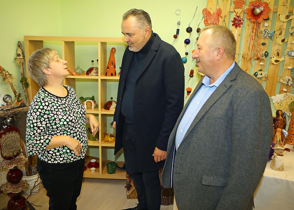 Bildtext LH_Doskozil-3_Adventmarkt Haus Gabriel-Riedlingsdorf: Bewohnerin Elisabeth Krutzler im Gespräch mit Landeshauptmann Hans Peter Doskozil und Bürgermeister Winfried Bruckner (v.l.).