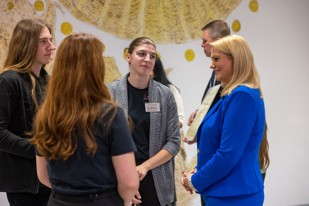 Bildtext: Landesrätin Daniela Winkler im Gespräch mit Jugendlichen.
