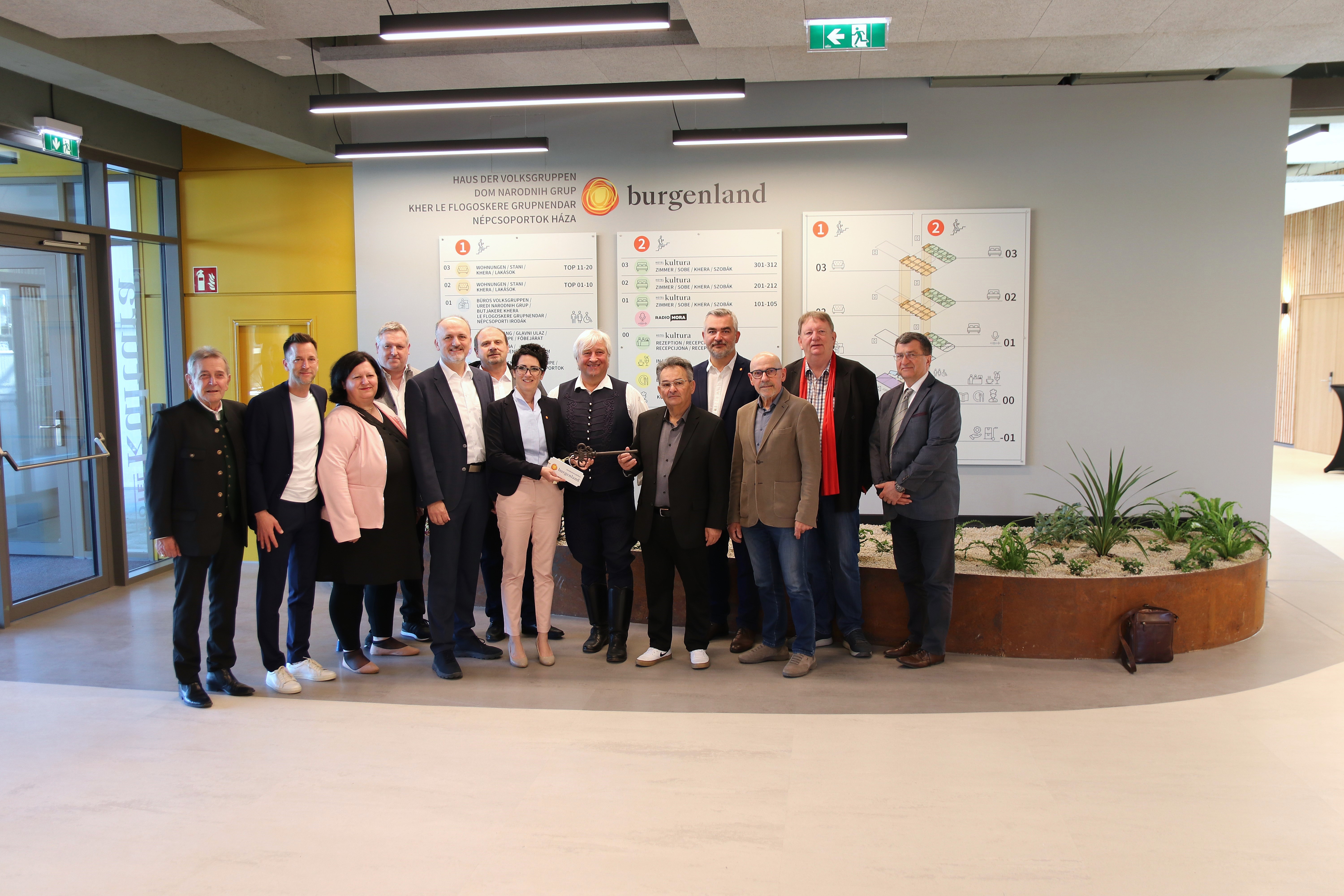 Vertreterinnen und Vertreter aller Volksgruppen waren bei der Schlüsselübergabe durch Infrastrukturlandesrat Heinrich Dorner ebenso anwesend wie Claudia Priber (GF Kultur-Betriebe Burgenland), Jutta Benedek (GF LIB) sowie Oliver Snurer (GF Gästehäuser und Küchen Burgenland).