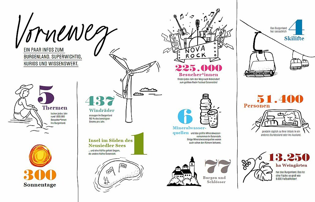 Anlässlich des 100-jährigen Bestandsjubiläums des Burgenlandes präsentierte Landeshauptmann Hans Peter Doskozil Ende letzten Jahres ein eigens konzipiertes Sachbuch für Jugendliche. Das neue Burgenland-Buch ist hochwertig gestaltet und führt im modernen Graphic-Novel Stil durch alle Aspekte des Burgenlandes. Auf 175 Seiten werden Themen wie Identität, Kunst und Kultur, Essen und Trinken, Freizeitgestaltung, Geschichte, Lebensraum und Zukunft behandelt und spannende Einblicke in Bereiche wie Gesellschaft und Politik, Mobilität, Bildung, Wirtschaft und Arbeit oder die Marke Burgenland gewährt.