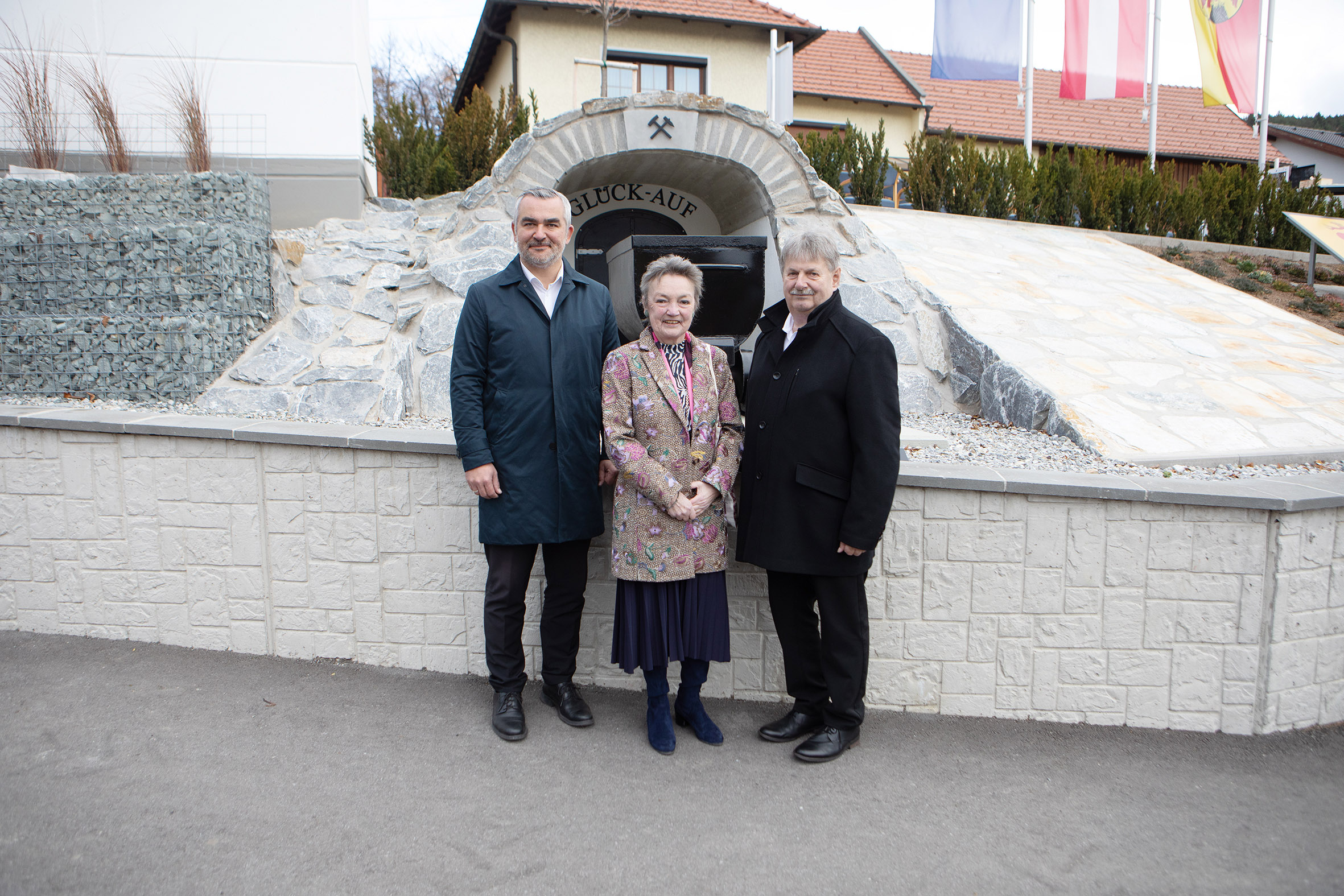 Bildtext Eröffnung Dorfplatz Redlschlag_1: Landesrat Heinrich Dorner mit Bernsteins Bürgermeisterin Renate Habetler und Vizebürgermeister, Ortsvorsteher von Redlschlag, Wilhelm Böhm (v.l.)I.