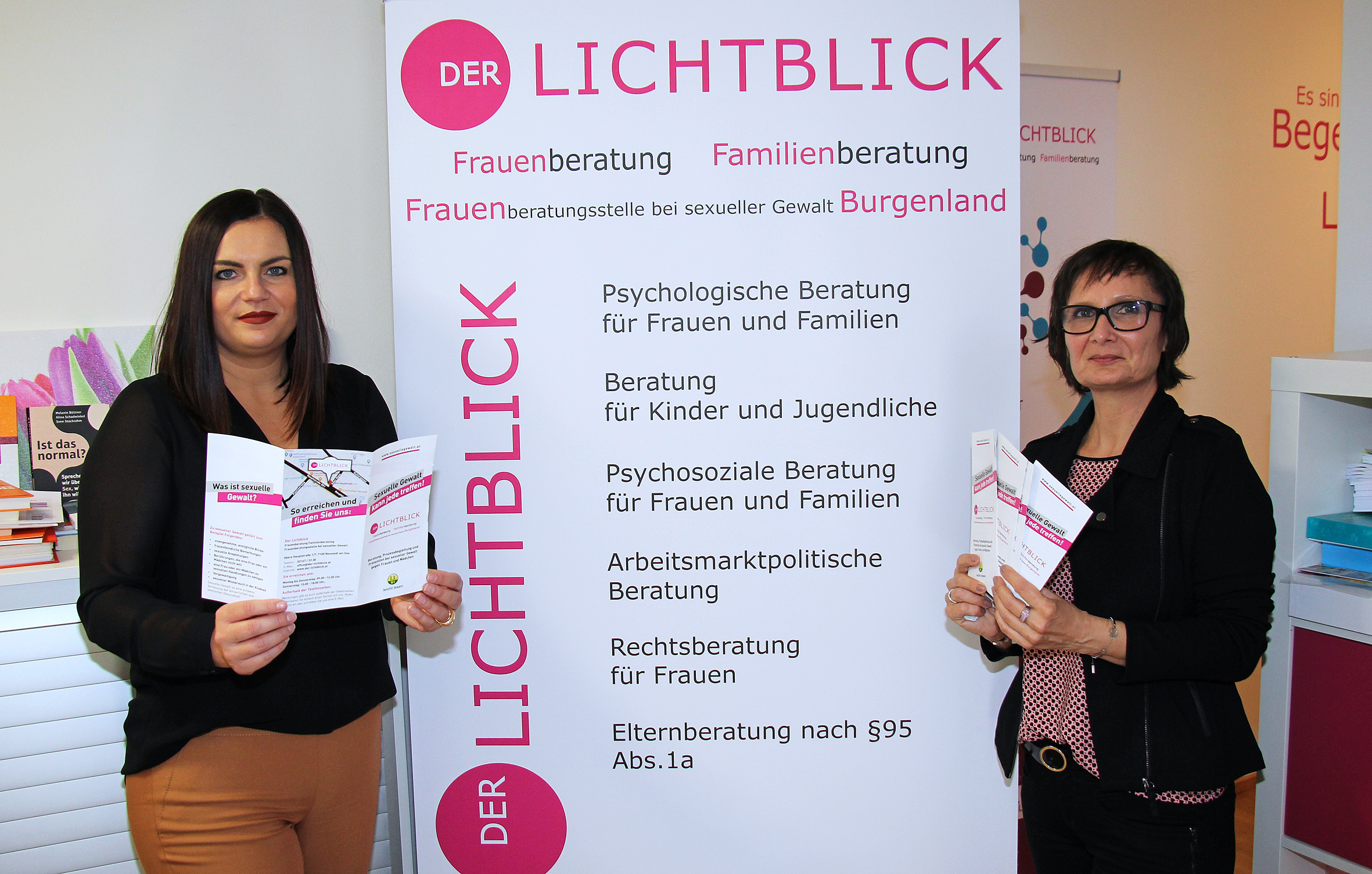 Die Frauen- und Familienberatungsstelle „Der Lichtblick“ in Neusiedl am See wurde im Jahr 1993 als vierte Beratungsstelle für Frauen im Burgenland gegründet. Seit September des Vorjahres ist diese Beratungsstelle auch burgenlandweit die erste Anlaufstelle für Fachberatungen zu sexueller Gewalt gegen Frauen und Mädchen. „Mit diesem Projekt konnten wir erstmals ein sehr konkretes Angebot einer fachlich fundierten Beratung schaffen, damit noch zielorientierter auf die Auswirkungen und Folgen von sexueller Gewalt eingehen, aber auch den Betroffenen eine noch spezifischere Unterstützung anbieten. Dennoch gilt es - gerade im Bereich der sexualisierten Gewalt - noch viel an Aufbau- und Aufklärungsarbeit zu leisten, denn da geht es auch stark um Öffentlichkeits- und Sensibilisierungsarbeit“, so LH-Stellvertreterin Mag.a Astrid Eisenkopf in einer gemeinsamen Pressekonferenz mit Mag.a Karin Behringer-Pfann, Geschäftsführerin der Frauenberatungsstelle „Der Lichtblick“ in Neusiedl am See.
