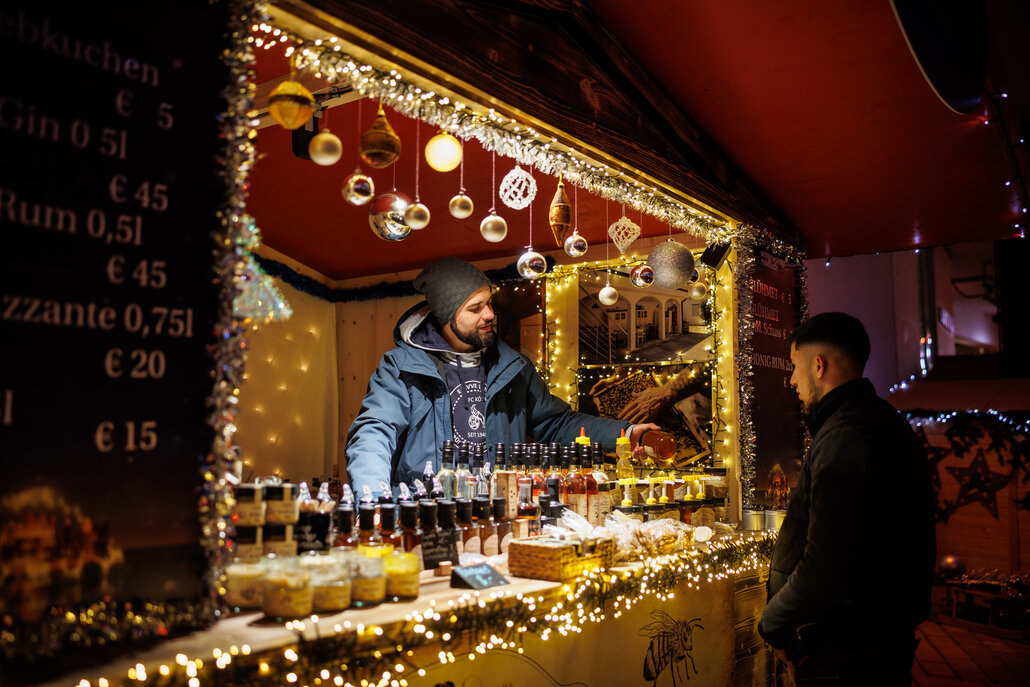 Bildtext Winterwunder Mörbisch 5: Das Adventdorf verzaubert mit liebevoll gestalteten Ständen, kulinarischen Spezialitäten und stimmungsvoller Dekoration.