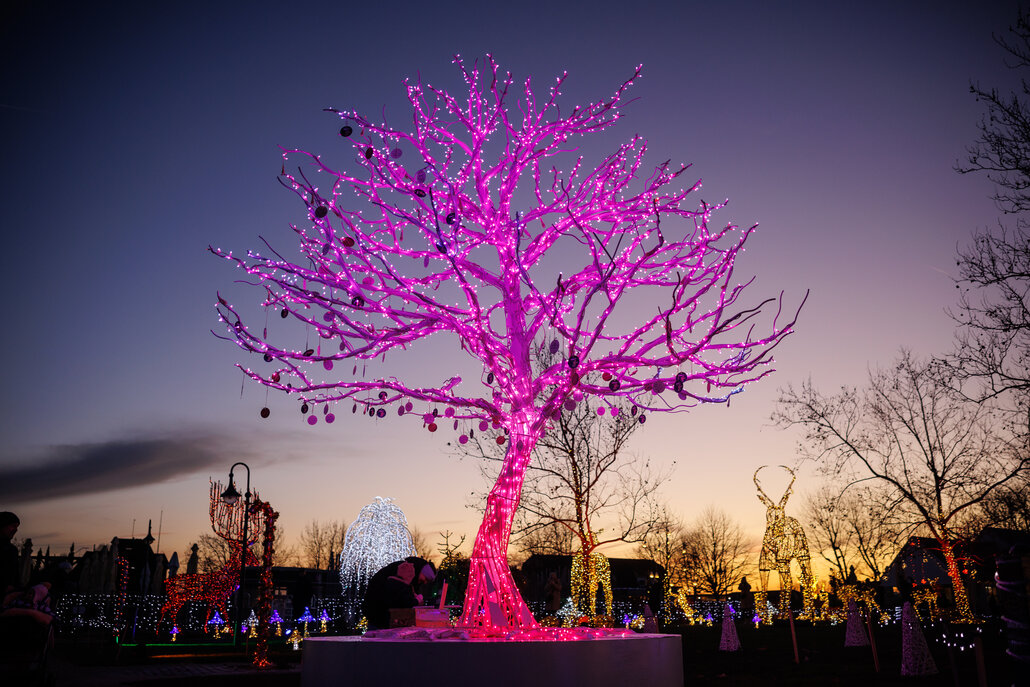 Bildtext Winterwunder Mörbisch 7: Der magische Lichterpfad am Neusiedler See beeindruckt mit 25 km Lichterketten, 376.000 Lichtpunkten und rund 100 km verlegten Kabeln.