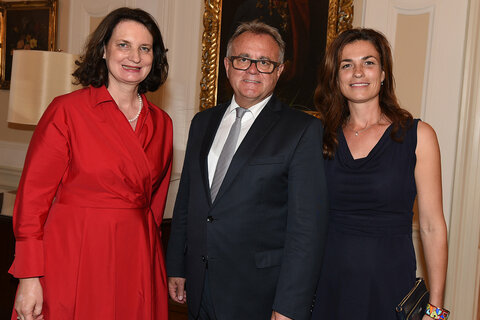 Bildtext (v.l.n.r.): Landeshauptmann Hans Niessl, Botschafterin Mag.a Elisabeth Ellison-Kramer, und Dr. Judit Varga, Ministerin für EU-Beziehungen beim bereits traditionellen Sommerfest in der Österreichischen Residenz in Budapest