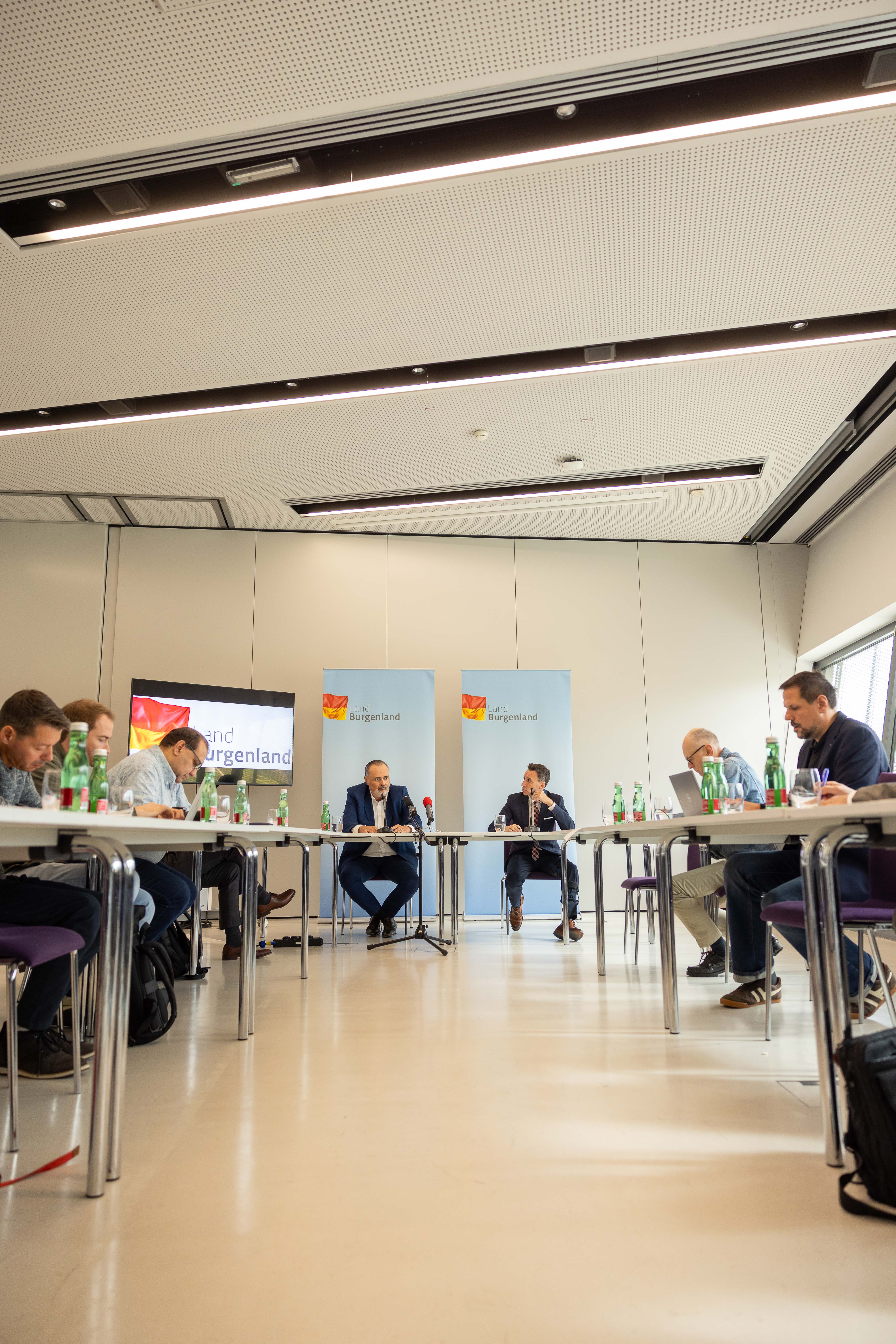 Bildtext Sonderprüfung Neue Eisenstädter 1 bis 4: Landeshauptmann Hans Peter Doskozil mit Rechtsanwalt Mag. Johannes Zink, zuständiger Prüfer der Sonderprüfung.