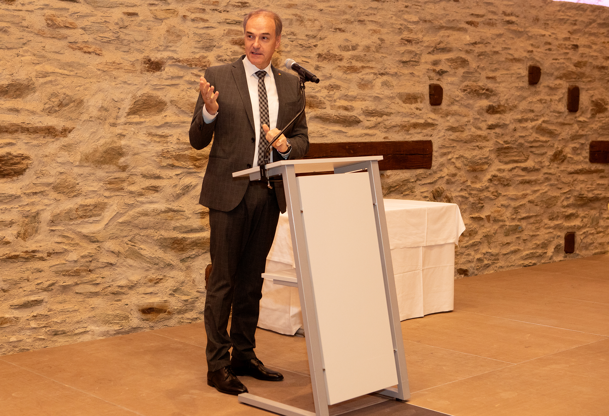 Bildtext Hegeringleiter-Empfang_4: Landesrat Dr. Leonhard Schneemann bei seiner Rede im Granarium der Burg Schlaining.