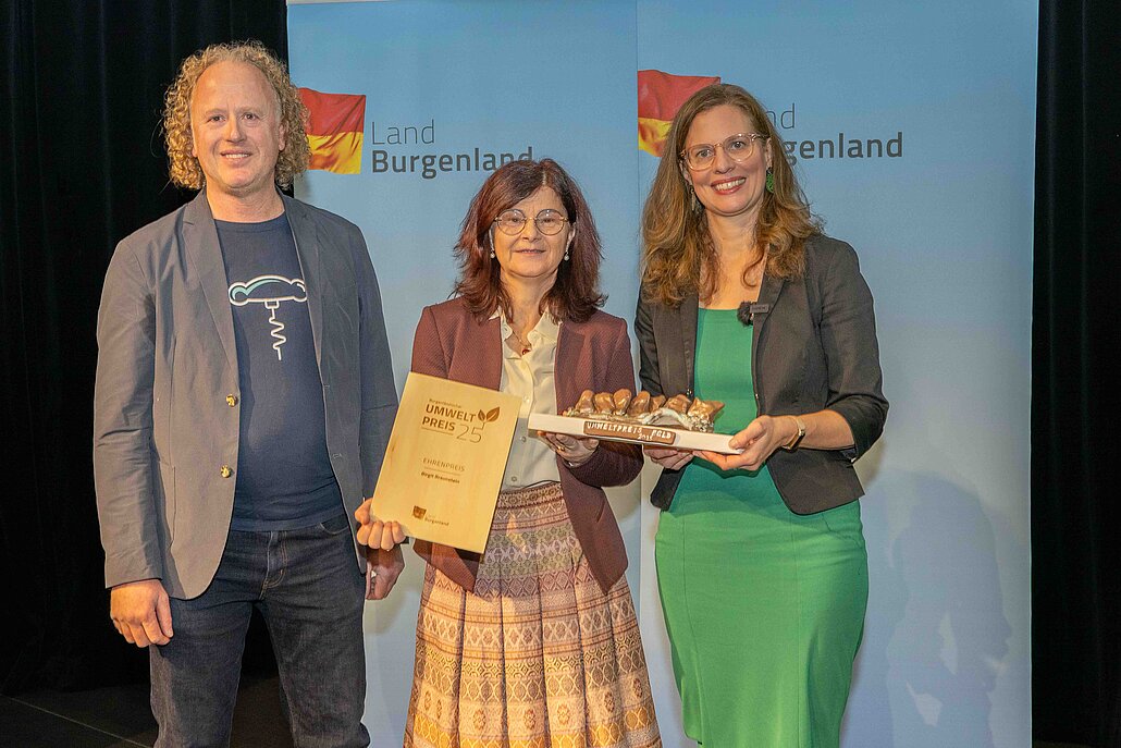 Der Umwelt-Ehrenpreis „Goldener Regenwurm“ ging an die Purbacher Winzerin Birgit Braunstein, die als Pionierin des biodynamischen Weinbaus im Burgenland gilt. Bewirtschaftet werden rund 20 Hektar Weingärten sowie fünf Hektar extensive Grünlandflächen – mit besonderem Fokus auf den Erhalt gesunder, klimafitter Böden.
