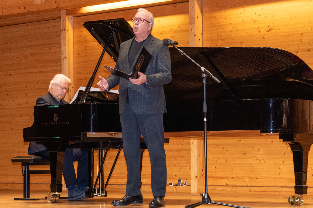Bildtext Programmpräsentation Liszt Festival Raiding 4: Intendant Eduard Kutrowatz in seiner Eigenschaft als Pianist und Kammersänger Herbert Lippert boten einen musikalischen Ausblick auf das Programm der heurigen Konzertsaison im Liszt Zentrum Raiding (v.l.).