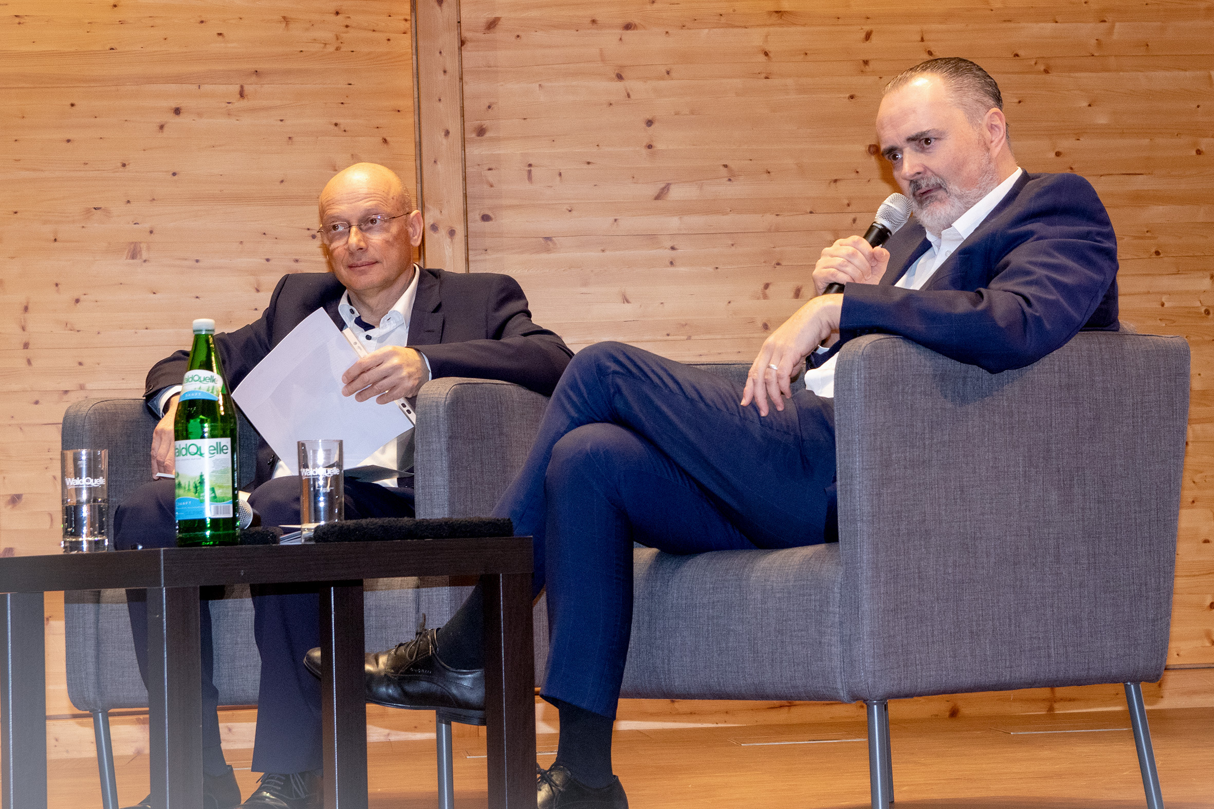 Bildtext Programmpräsentation Liszt Festival Raiding 3: Thomas Mersich, Kaufmännischer Leiter des Liszt Zentrums Raiding, und Landeshauptmann Hans Peter Doskozil bei der Präsentation der heurigen Konzertpräsentation (v.l.).