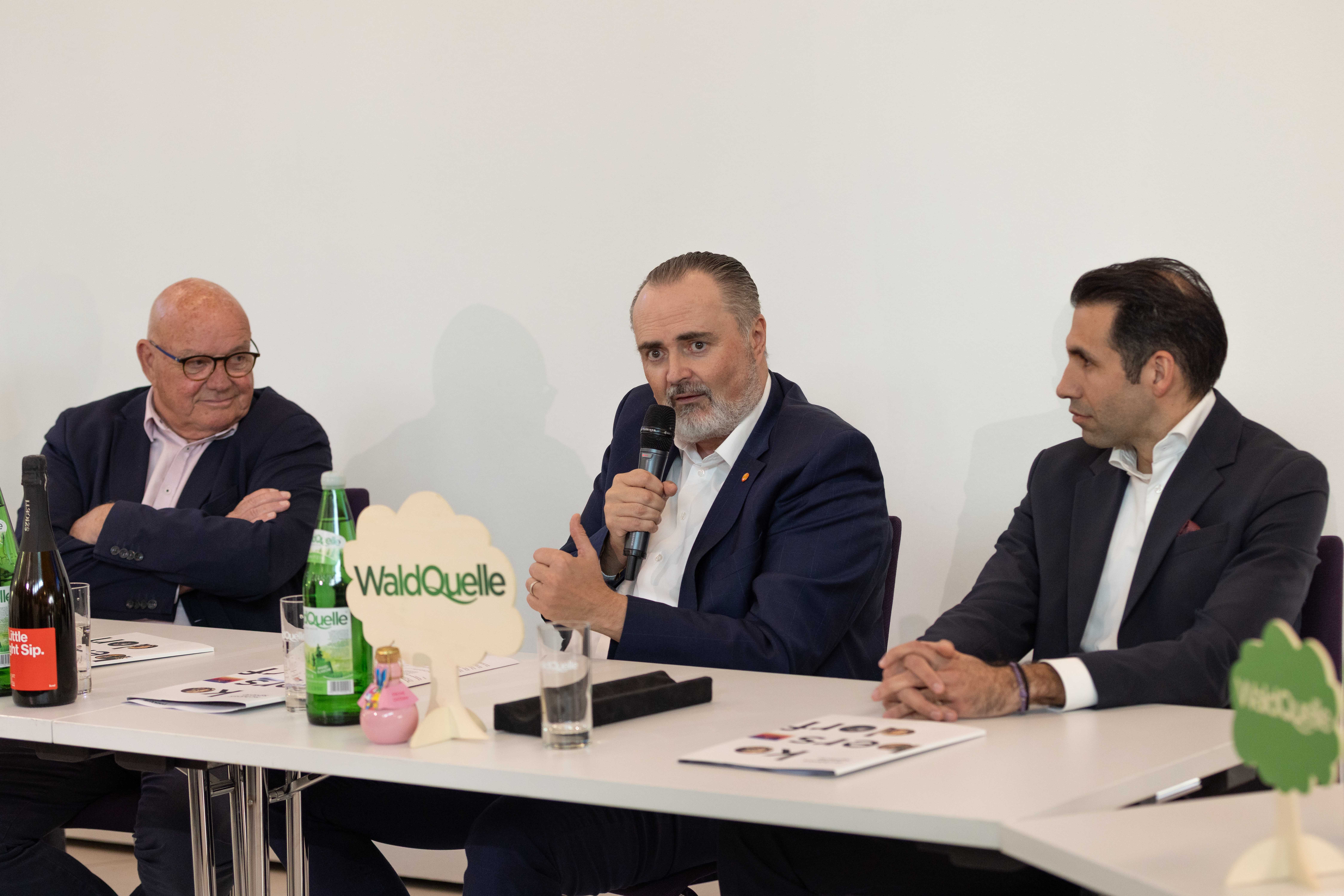 Bildtext Schloss-Spiele Kobersdorf 2: Landeshauptmann Hans Peter Doskozil (Bildmitte) bei der Pressekonferenz.
