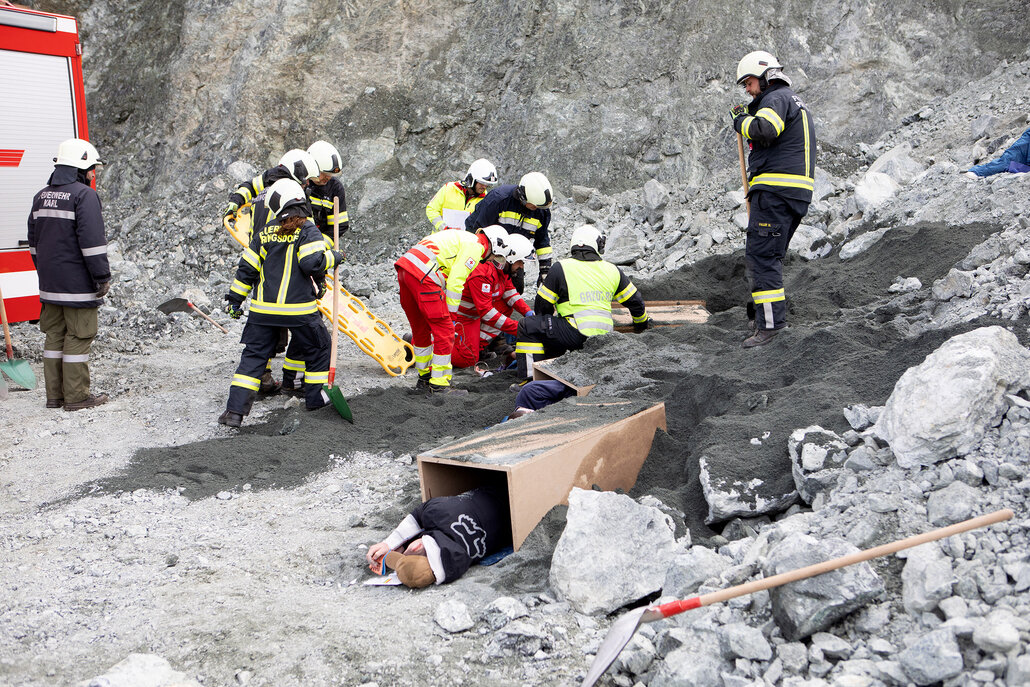 Bildtext KHD-Übung Pilgersdorf_5: Rettung von verschütteten Kindern im Zuge der Katastrophenschutzübung.
