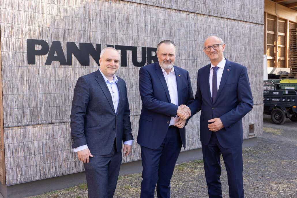 Bildtext Treffen Doskozil und Mattle 2: LH Doskozil und LH Mattle mit Matthias Grün, Esterhazy Betriebe AG.