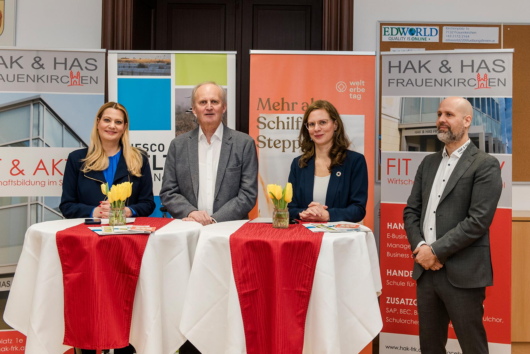 Landeshauptmann-Stellvertreterin Anja Haider-Wallner und Landesrätin Daniela Winkler präsentierten am Mittwoch das offizielle Logo für das bevorstehende Welterbe-Jubiläumsjahr - 25 Jahre UNESCO-Welterbe Fertö-Neusiedler See. Die feierliche Siegerehrung fand in der Bundeshandelsakademie Frauenkirchen statt. Gemeinsam mit Obmann Erwin Preiner und Geschäftsführerin Lina Karner wurden die besten Entwürfe des Schulwettbewerbs ausgezeichnet. „Die Einbindung der Jugend ist der Schlüssel für eine lebendige Kulturlandschaft“, betonten Haider-Wallner und Winkler unisono.