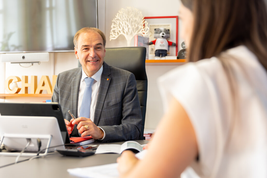 Bildtext LR Schneemann: Porträt Wirtschaftslandesrat Dr. Leonhard Schneemann.