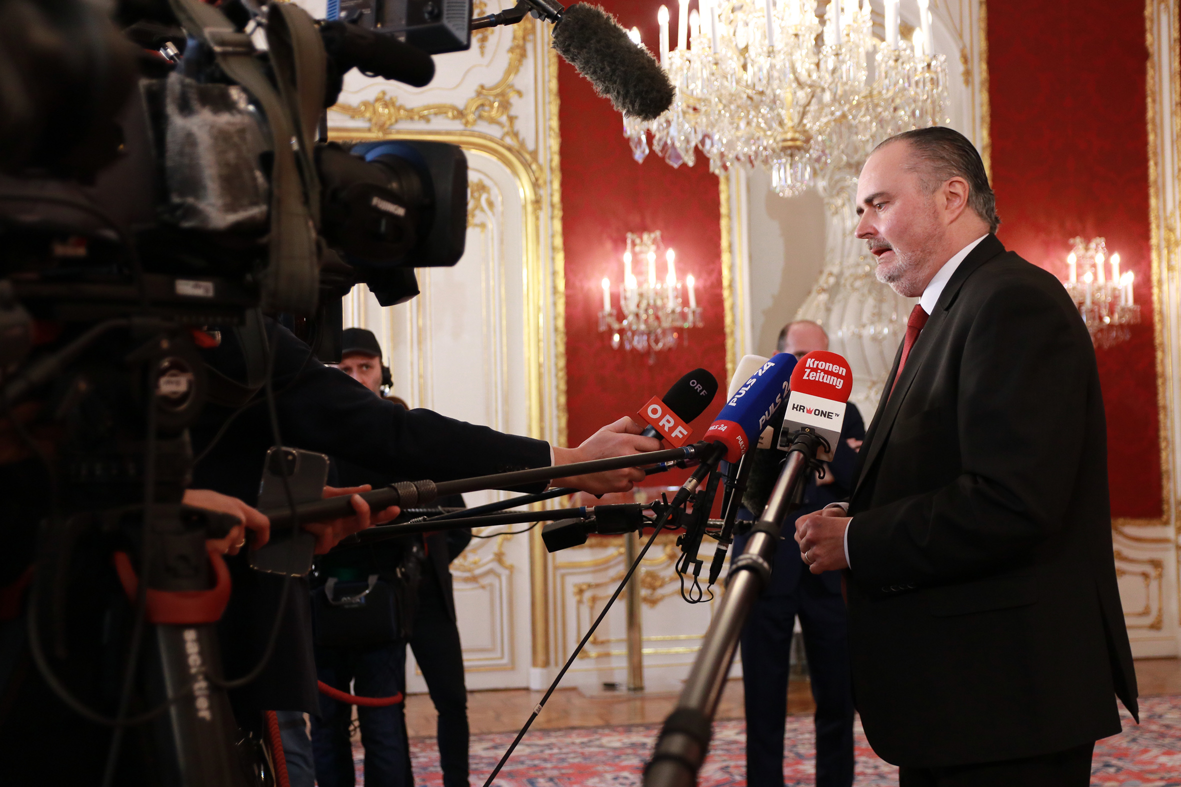 Bildtext Angelobung LH Doskozil 1 bis 3: Landeshauptmann Hans Peter Doskozil wurde von Bundespräsident Alexander Van der Bellen auf die Bundesverfassung angelobt.