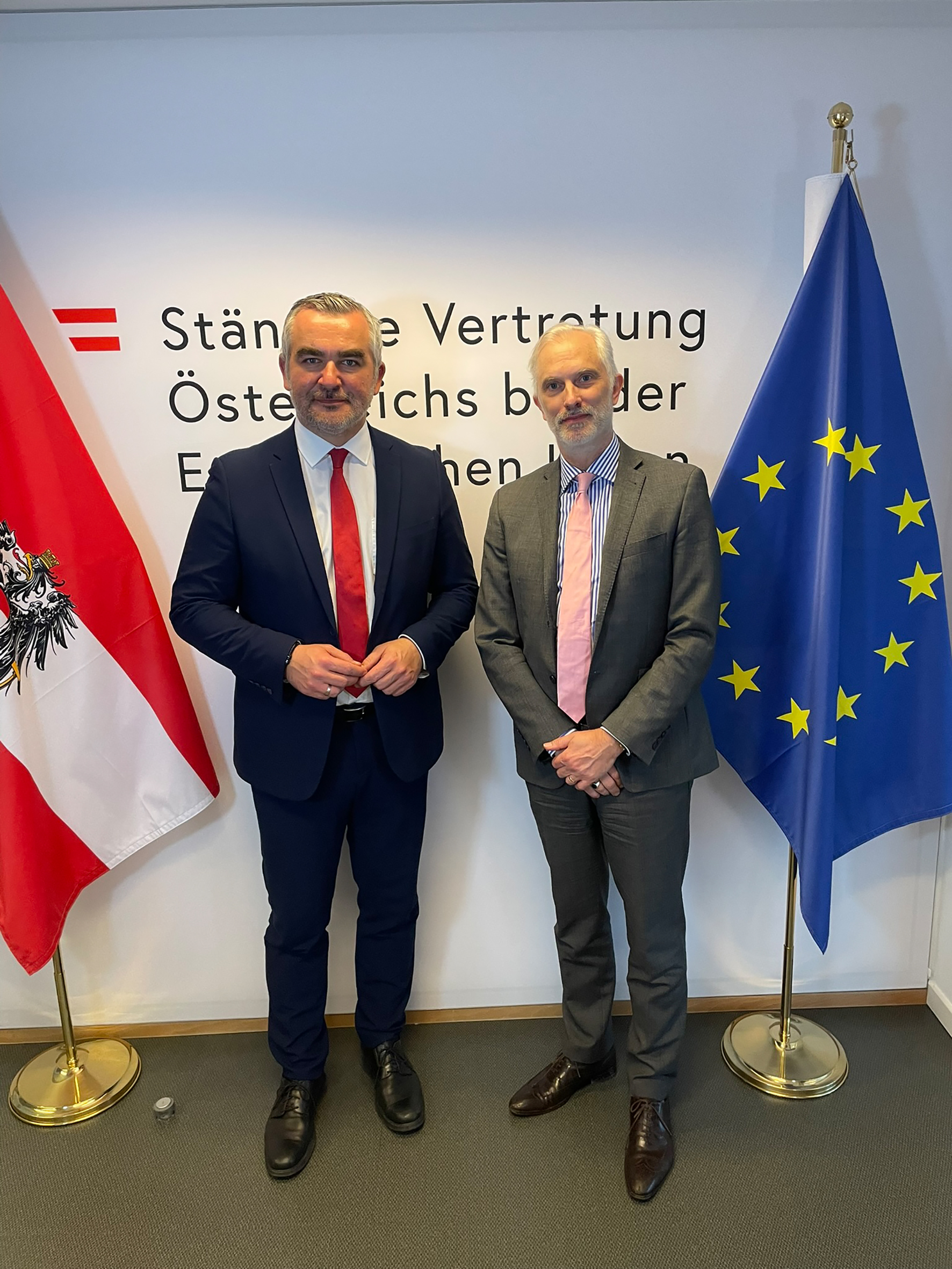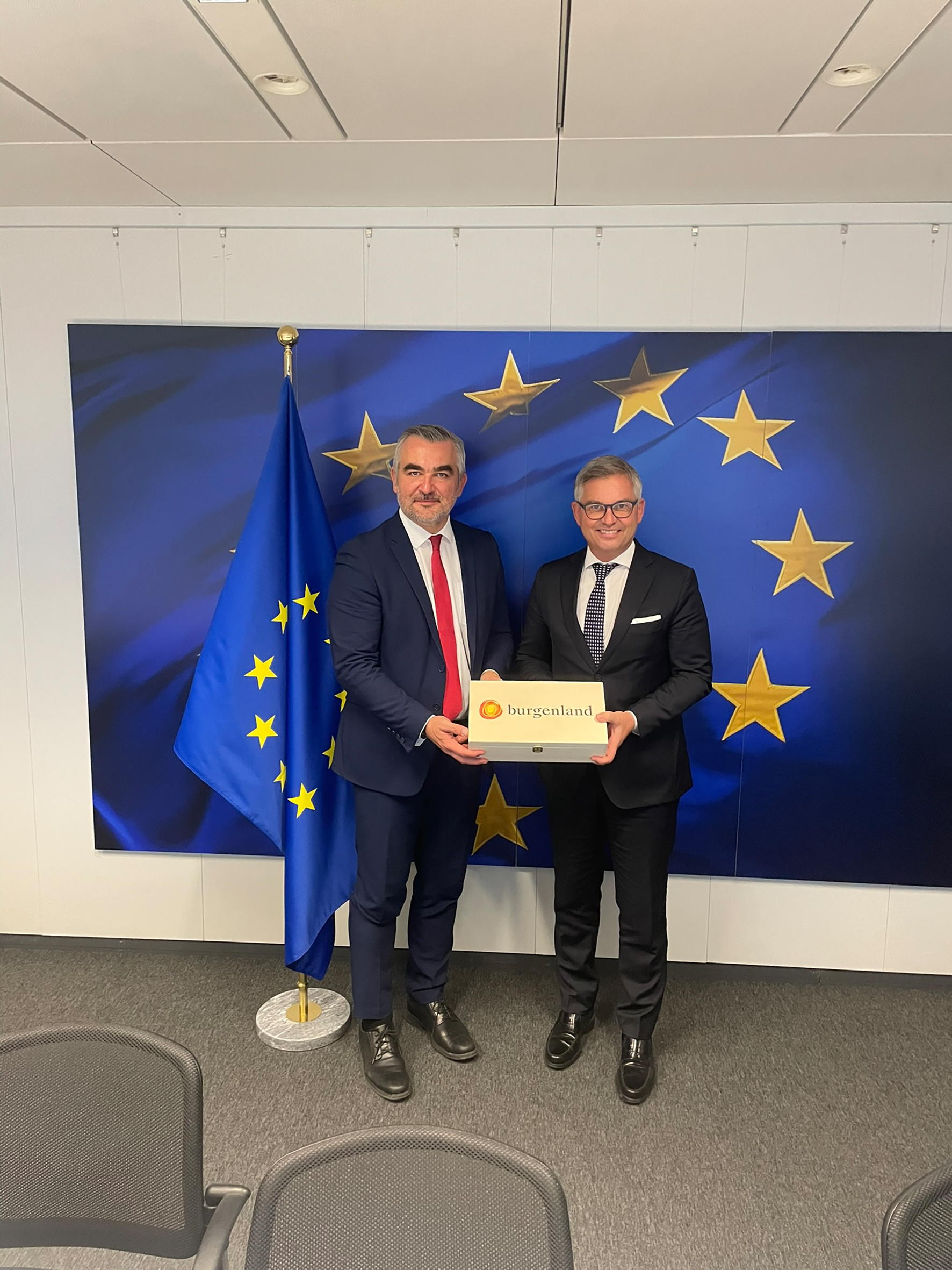 Zum Abschluss der Brüssel-Reise traf Dorner mit dem für Asyl und Migration zuständigen österreichischen EU-Kommissar Magnus Brunner zusammen, bei dem der Kommissar einen Einblick in den Umsetzungsstand des Migrations- und Asylpakts der EU gab. Der Landesrat verwies bei dem Treffen auf die spezielle Situation des Burgenlands, das durch seine fast 400 Kilometer lange Grenze zu Ungarn besonders von Migrationsbewegungen betroffen ist. „Seit 2015 sind rund 450.000 Flüchtlinge nach Österreich gekommen, 90 Prozent davon über die burgenländische Grenze. Es braucht einen klaren und konsequenten Kurs in Österreich und in der EU, so wie er im Burgenland gefahren wird - denn die illegale Migration muss endlich nachhaltig eingedämmt werden“, betonte Dorner, der in dem Zusammenhang die Forderung von Landeshauptmann Hans Peter Doskozil nach einer jährlichen Asylobergrenze von 10.000 bekräftigte. Außerdem müssten Verfahrenszentren außerhalb Europas geschaffen werden – hier gehe aber wie beim Thema Rückführungsabkommen wenig bis nichts weiter.