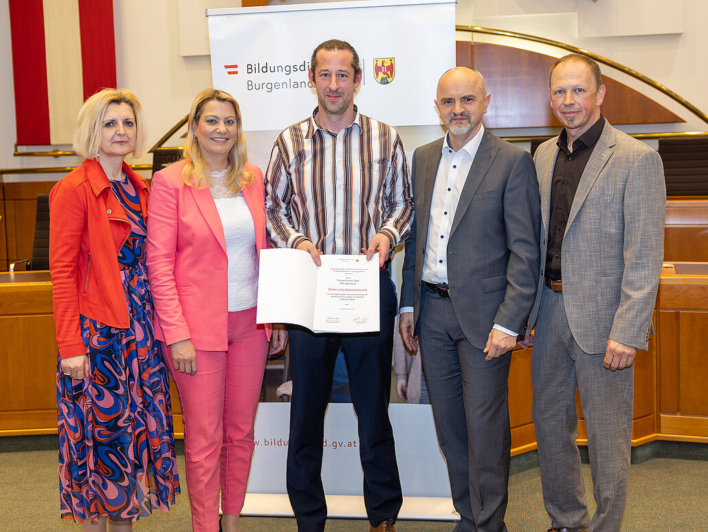 Bildtext: Bildungslandesrätin Mag.a (FH) Daniela Winkler überreichte gemeinsam mit Bildungsdirektor Mag. Heinz Josef Zitz das Sportgütesiegel sowie Dank- & Anerkennungsurkunden an Schulen sowie Lehrerinnen und Lehrer.