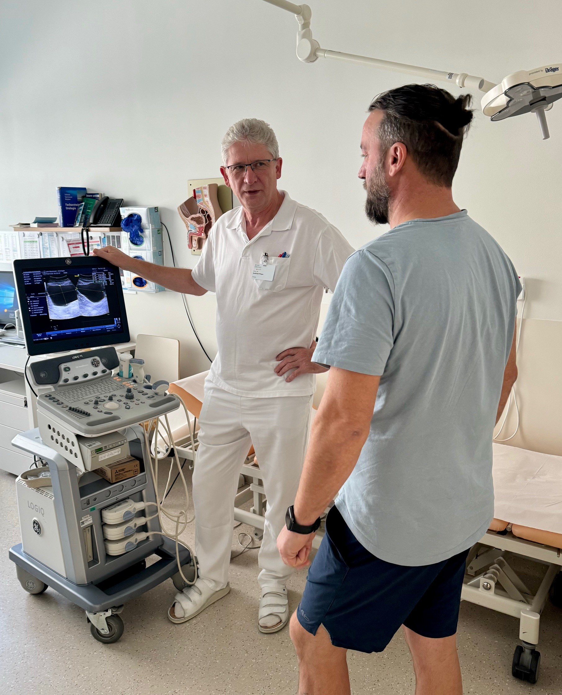Bildtext Urologie-Untersuchung: Primarius Pfleger nahm sich Zeit für die wichtige Vorsorgeaktion.