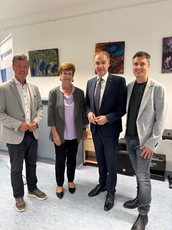 Bildtext 30 Jahre Mobiler Heilpädagogischer Dienst_1: Landesrat Dr. Leonhard Schneemann (2.v.r.) mit Rettet das Kind Burgenland, MHD Eisenstadt, Leiter Mario Zagler und Rettet das Kind-Präsident Dr. Peter Rezar (v.l.) bei der Jubiläumsfeier 30 Jahre Mobiler Heilpädagogischer Dienst.