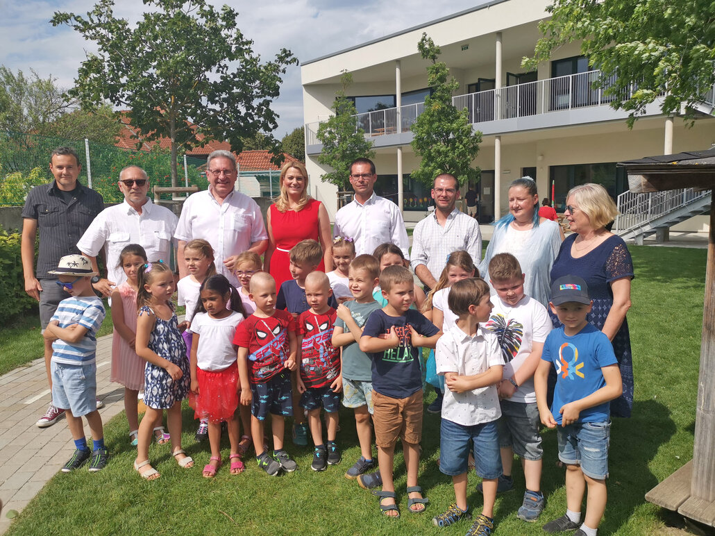 Ein neuer Gemeindekindergarten wurde in Nickelsdorf im Beisein von Bildungslandesrätin Daniela Winkler, Bürgermeister Gerhard Zapfl, Vizebürgermeister Helmut Pecher, weiteren Vertretern der Gemeinde und zahlreicher Festgäste am Freitag, 24. Juni 2022, feierlich eröffnet. Die Errichtung eines weiteren Kindergartens war aufgrund der Bevölkerungsentwicklung notwendig geworden. Das Gebäude wurde von der OSG errichtet und vorfinanziert, der Spatenstich war 2018 erfolgt. Im neuen Kindergarten werden rund 50 Kinder in zwei Gruppen von drei Pädagoginnen und zwei Helferinnen betreut.