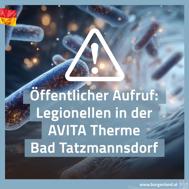 Am Freitag, 5. Dezember 2025 haben Wasserproben, die im Zuge einer routinemäßigen Bädergewässer-Untersuchung seitens der Biologischen Station in den Becken der Therme gezogen wurden, ein positives Ergebnis in Bezug auf Legionellen aufgewiesen. Da dem Land Burgenland zudem eine Legionellenerkrankung bei einer Person, die sich im November in der AVITA Therme Bad Tatzmannsdorf sowie im dazugehörigen Hotel aufgehalten hat, zur Kenntnis gebracht wurde, hat die zuständige Bezirkshauptmannschaft Oberwart die sofortige behördliche Schließung der Therme angeordnet. Das Land Burgenland ruft alle Personen, die sich in den vergangenen 14 Tagen in der Therme aufgehalten haben, dazu auf, ihren Gesundheitszustand zu beobachten.