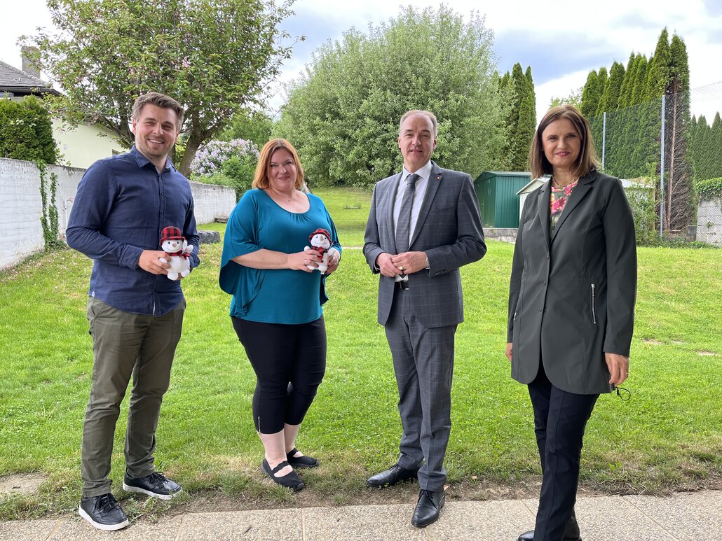 Anlässlich des 25-jährigen Bestehens besuchten am 13. Mai 2022 Landesrat für Gesundheit und Soziales, Dr. Leonhard Schneemann und Referentin für Soziales, Stefanie Buzanich, die Kinder und Jugendlichen im Wohnangebot Oberschützen. Gemeinsam mit der Pro Juventute Geschäftsführerin, Mag. Andrea Scharinger, der Regionsleiterin, Sandra Hoffmann und dem Teamleiter, Florian Hotwagner, wurde sich sowohl über die Organisation des Sozialunternehmens als auch über den Alltag in der Wohngemeinschaft ausgetauscht. So konnte sich der hohe Besuch einen guten Einblick in die tägliche Arbeit mit den Kindern und Jugendlichen verschaffen. Weiters wurde ein großes Augenmerk auf die Ansuchen der Zusatzstunden gelegt.