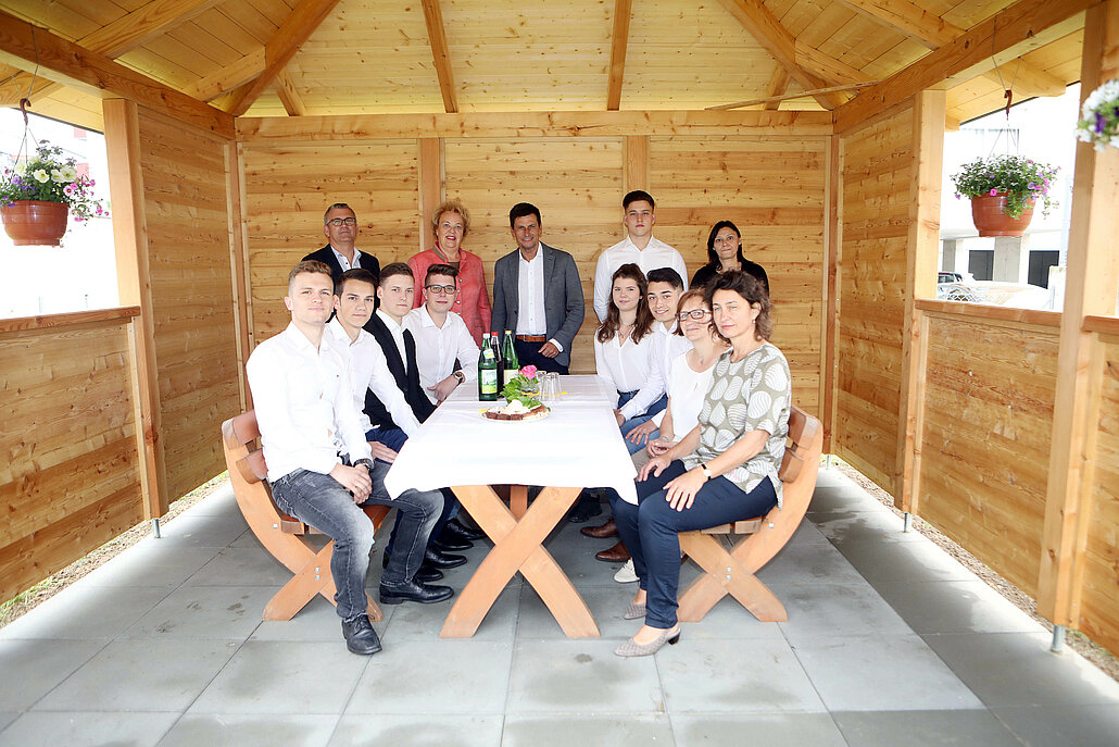 Sechs Schüler und eine Schülerin der HTBL Pinkafeld waren für das Projekt der „Pergola“ beim Sozialhaus in Oberwart verantwortlich. Das Gartenhaus soll künftig ein Rückzugsort im Garten für die Bewohner sein. Die Schüler arbeiteten unentgeltlich, die Materialkosten von 8.000 Euro wurden jeweils zur Hälfte vom Familienreferat und vom Hauptreferat Soziales übernommen. Landtagspräsidentin Verena Dunst und Landesrat Christian Illedits übergaben am Mittwochvormittag gemeinsam mit Direktor Wilfried Lehrer und den Schülern die Pergola an die Bewohner des Sozialhauses.