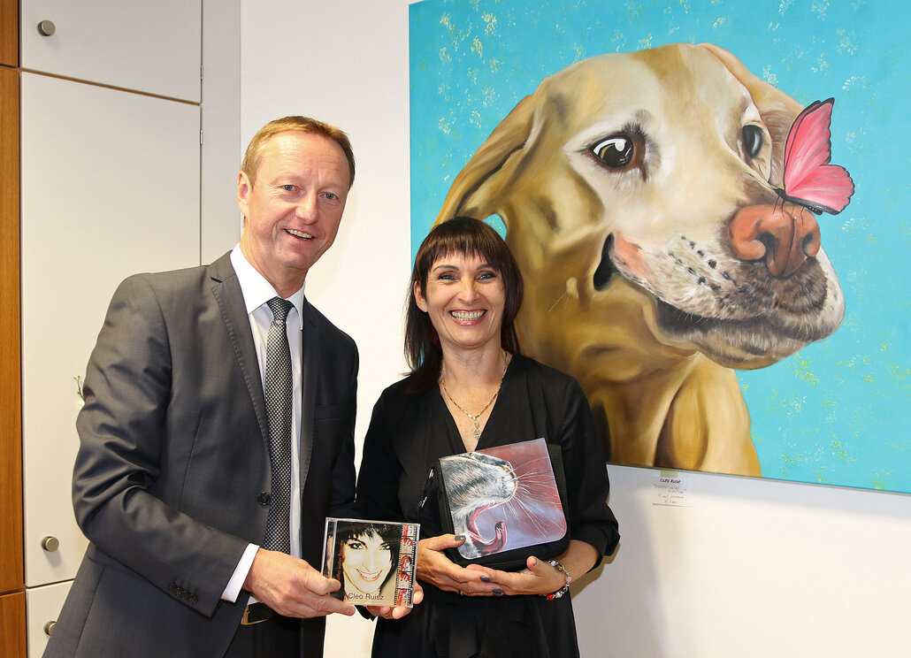 „Cleo Ruisz‘ Bilder atmen Farbe, Frische und Lebensfreude, die teils fotorealistischen Tierbilder vermitteln den Eindruck großer Lebendigkeit. Immer aber sind es Bilder, die einen beim Betrachten in gute Stimmung versetzen, in deren Gegenwart man sich wohlfühlt“, sagte Tschürtz bei der Eröffnung.