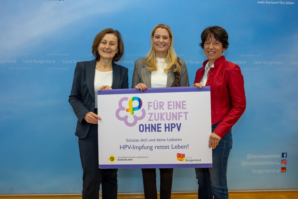 Bildtext Winkler HPV Botschafterin: Mag.a Andrea Konrath, Geschäftsführerin Krebshilfe Burgenland, Landesrätin Mag.a (FH) Daniela Winkler und Dr.in Michaela Klein, Vorstandsmitglied Krebshilfe Burgenland (v.l.).