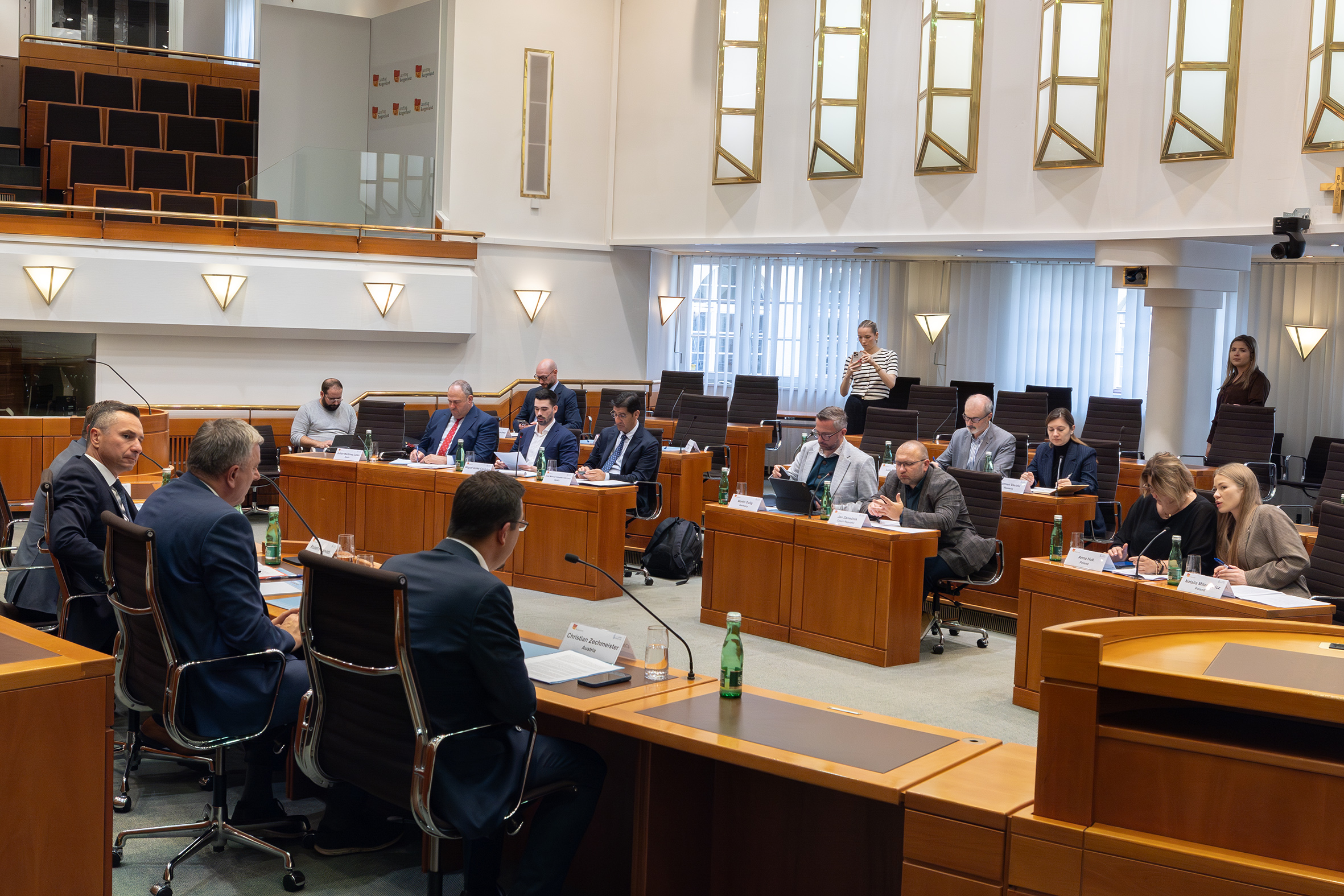 Bildtext WINE Intergroup 6: WINE Intergroup-Präsident LAbg. Robert Hergovich leitet die Tagung der Intergroup in Eisenstadt und Donnerskirchen.