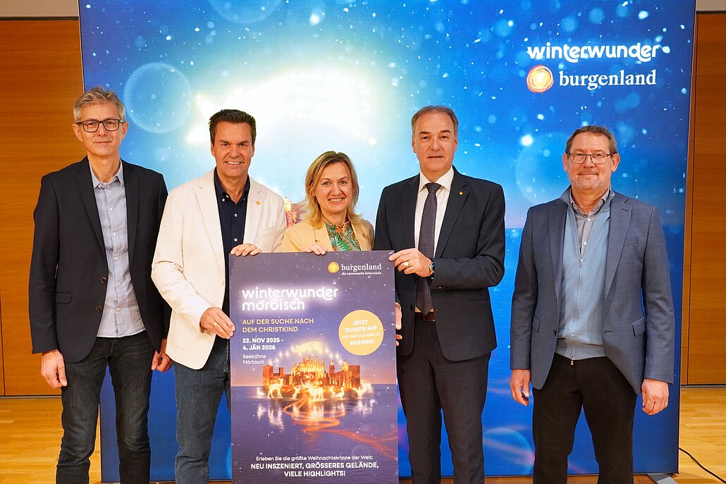 Im Rahmen einer Pressekonferenz in Eisenstadt präsentierte Burgenland Tourismus die Dachmarke „Winterwunder Burgenland“. Nach dem erfolgreichen Pilotprojekt mit der größten Weihnachtskrippe der Welt auf der Seebühne Mörbisch im vergangenen Jahr, geht das Burgenland heuer mit einem umfassenden Advent- und Winterwunder-Angebot an den Start – mit 28 stimmungsvollen Märkten, Erlebnissen und Veranstaltungen von Nord bis Süd, zu finden unter dem Link Winterwunder Burgenland. Initiiert und künstlerisch umgesetzt wurde das Projekt im Vorjahr vom bekannten burgenländischen Bühnenbildner Manfred Waba, der mit der Idee bei Tourismusreferent und Landeshauptmann Hans Peter Doskozil sofort ein offenes Ohr gefunden hat. Dem Landeshauptmann ging es dabei darum, den Ausbau des Tourismusangebots in Richtung Ganzjahrestourismus weiter zu forcieren. Die im Vorjahr präsentierte größte Weihnachtskrippe der Welt wurde so als Leuchtturmprojekt für den Wintertourismus geschaffen – ein Symbolprojekt, das das Burgenland auch in den kommenden Jahren bereichern und touristisch stärken wird.
