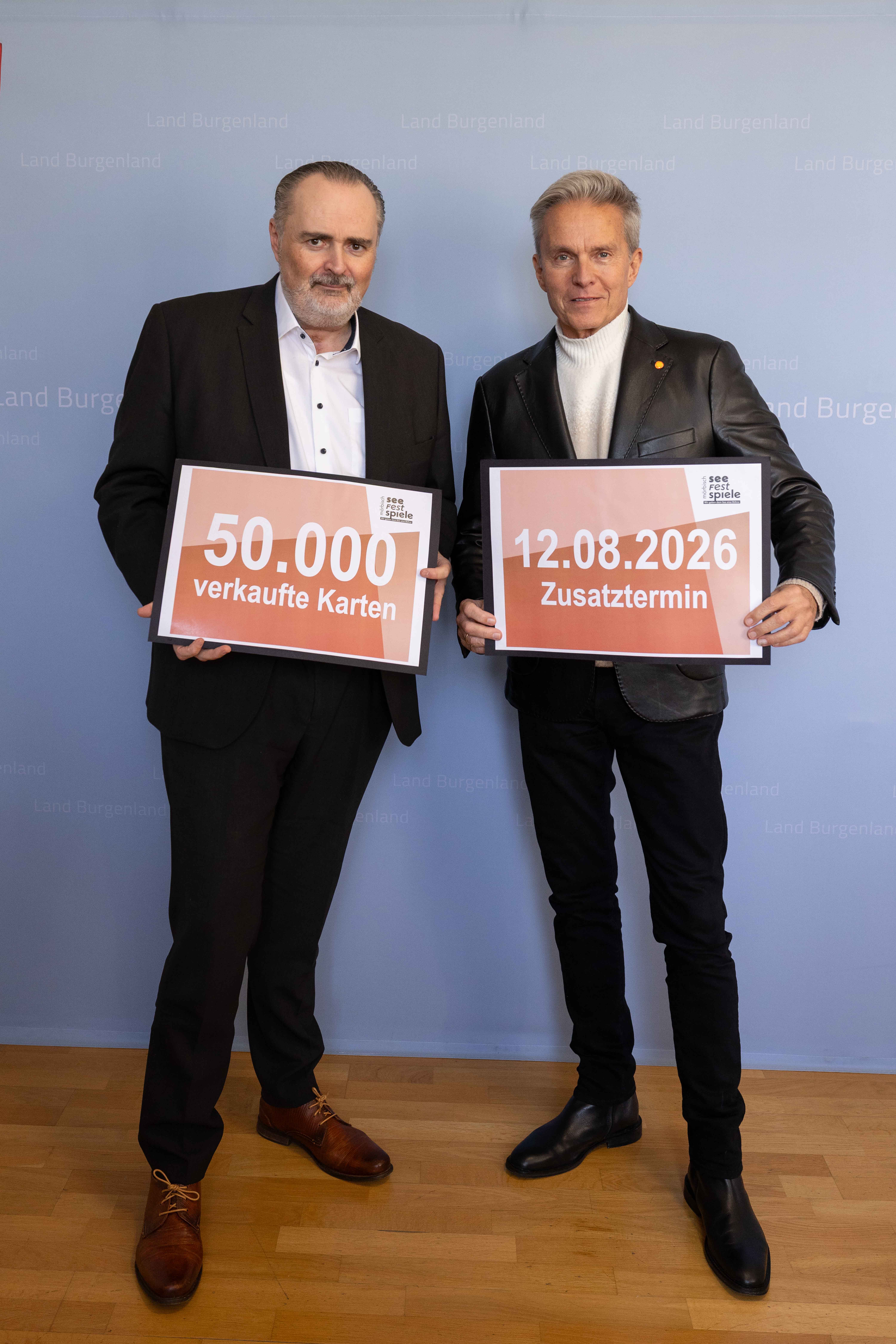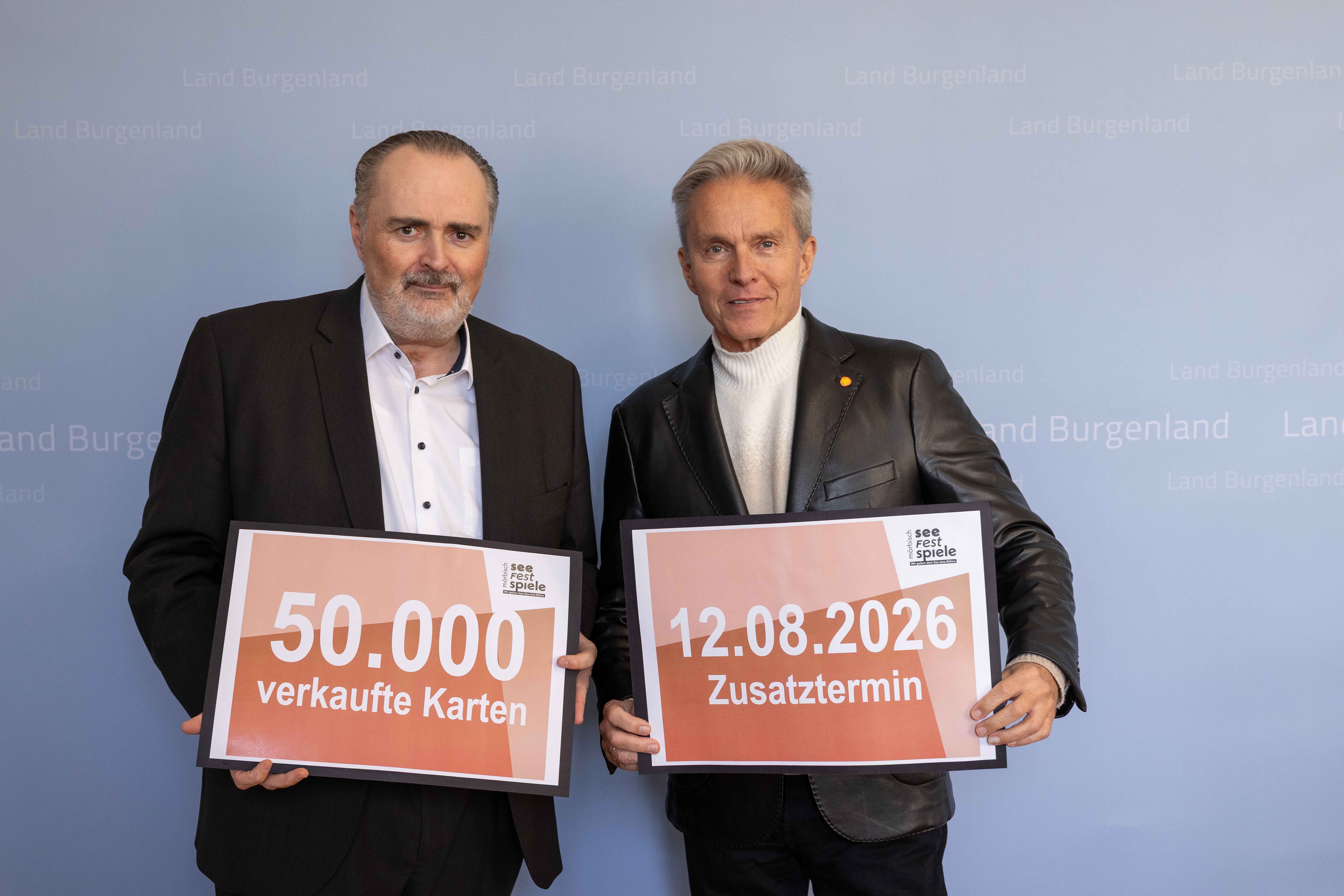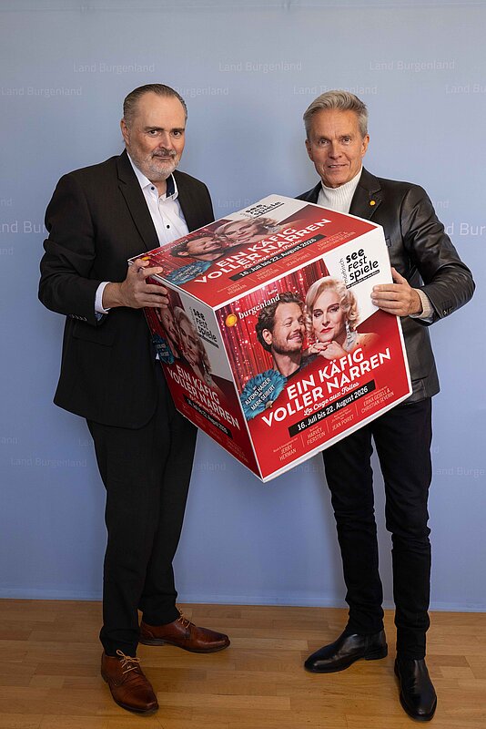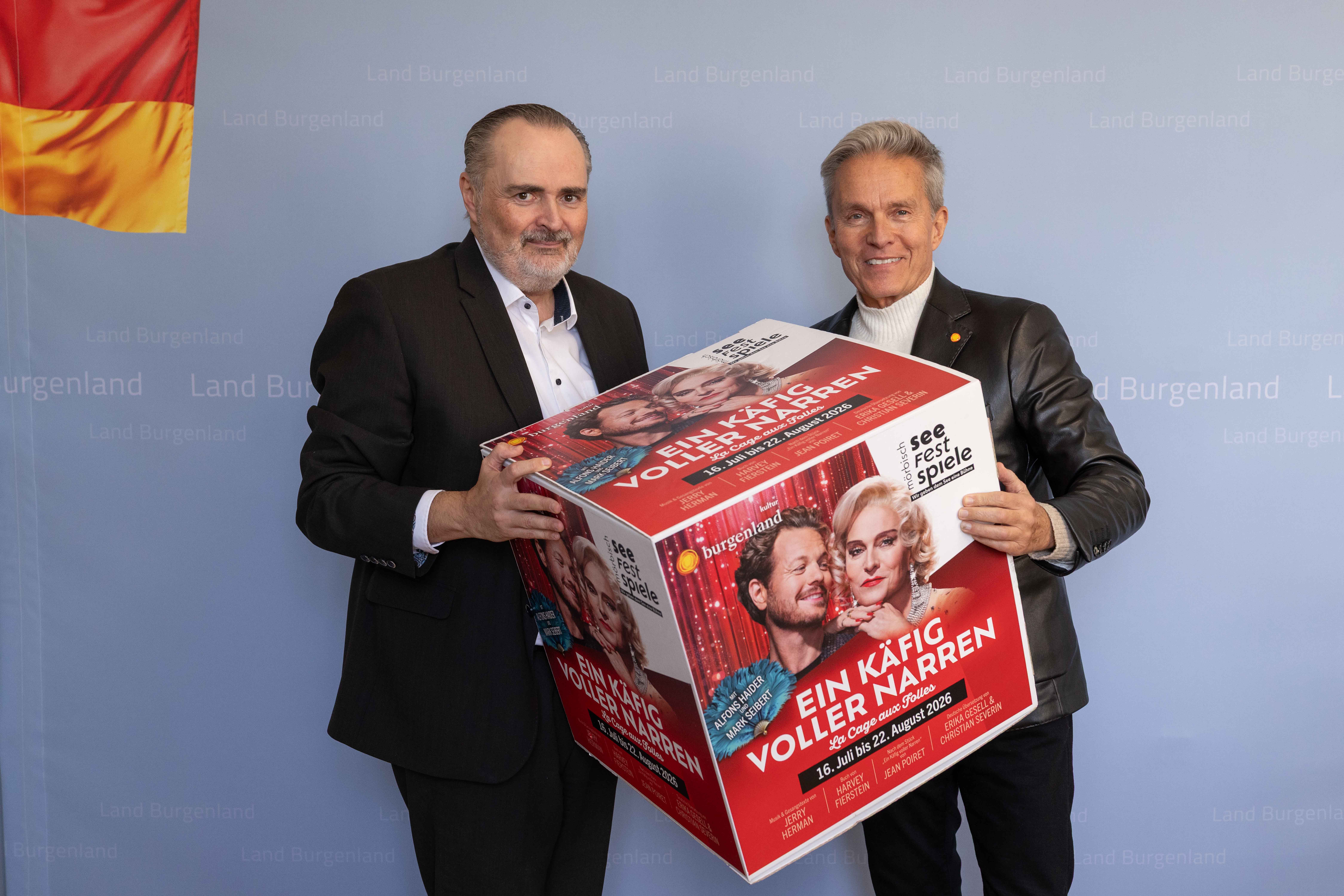 Landeshauptmann Hans Peter Doskozil und Generalintendant Alfons Haider haben bereits jetzt Grund zum Jubeln: Für die weltbekannte Komödie „Ein Käfig voller Narren – La Cage aux Folles“ wurden bereits über 50 000 Karten verkauft. Aufgrund der hohen Nachfrage wurde als Zusatztermin der 12. August 2026 angesetzt.