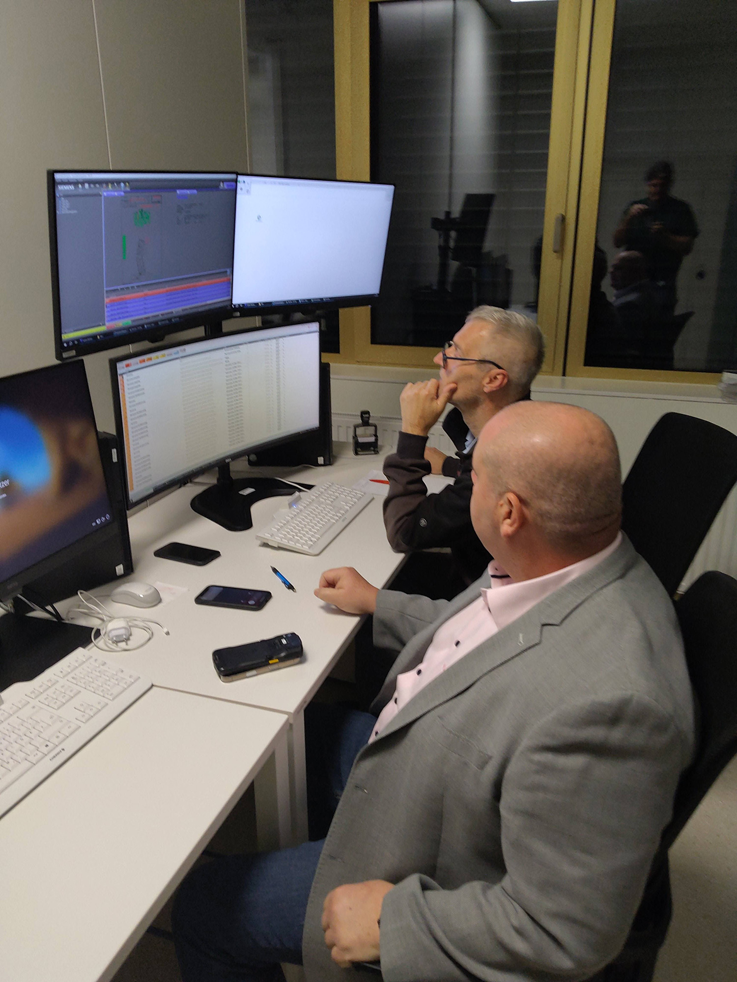 - An beiden Standorten sind Mitarbeiter vor Ort um die stabile Kommunikation und die erfolgreiche Datenübertragung zu testen.
